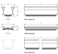Die MicroRail verwendet dieselben Modulklemmen wie die Dome Systeme. Damit sind sämtliche gewerblichen Dächer mit einem Klemmentyp realisierbar. Für Wellblechdächer wird die MicroRail als Set mit dem CSM-Adapter verwendet. Ohne Wellblechadapter kann direkt auf dem Trapezblech installiert werden – genauso wie bei unserem MultiRail System.